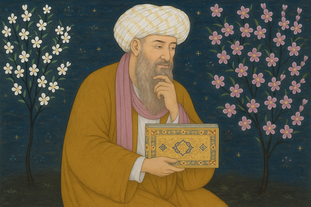 Ibn ʿArabi was thus born during a period of remarkable intellectual and cultural flourishing in Andalusia. His family belonged to the noble lineage of Qureishi, providing him with access to both religious and secular education. Early on, Ibn ʿArabi displayed an extraordinary aptitude for learning, delving into Islamic jurisprudence, theology, philosophy, and poetry. Not only did Ibn ‘Arabi have a firm grasp of classical Islamic sciences, but he also climbed the highest peaks of mysticism. Andalusia was a centre for Sufi masters and mystical thought, and Ibn ʿArabi’s formative years were shaped by interactions with local Sufi masters and teachers. In his youth, he experienced a profound spiritual awakening while battling an illness. This experience led him to devote himself entirely to the path of divine knowledge. According to another version, prior to immersing himself in the study of classical Islamic sciences, he was engaged in a variety of pastimes and activities while residing in the military barracks, notably none of which were detrimental or counterproductive. However, it was also during this time that he had a dream that changed his life, in which the Prophet Muhammad ﷺ instructed him to devote himself to the study of sacred knowledge. This was the pivotal moment that set him on the path of academic study and spiritual enlightenment.